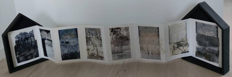Vanaf 2024 volgde ik online cursussen via Fibre Arts Take Two (Australië). Ik liet me inspireren door Tara Axford in Inspired by Nature en verdiepte me in Wabi Sabi collage via The Way of Wabi Sabi Collage van Donna Watson.